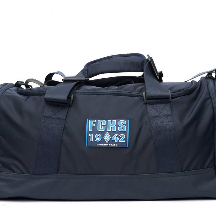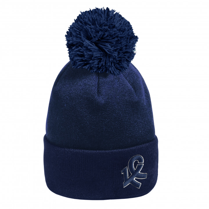 Шапка КС синяя с белыми полосами с отворотом и помпоном