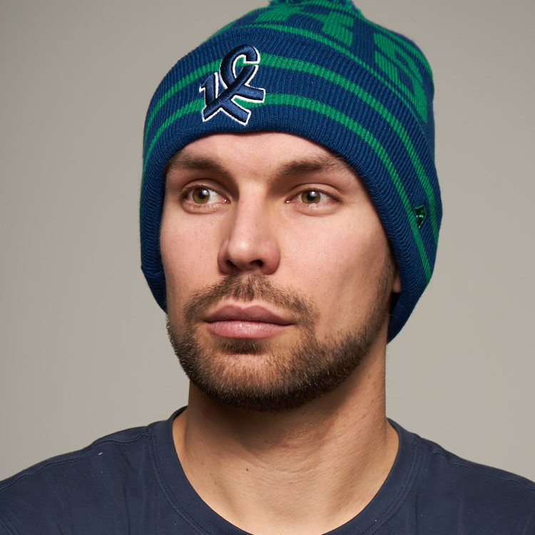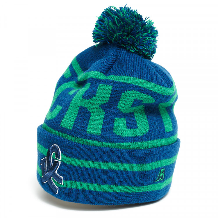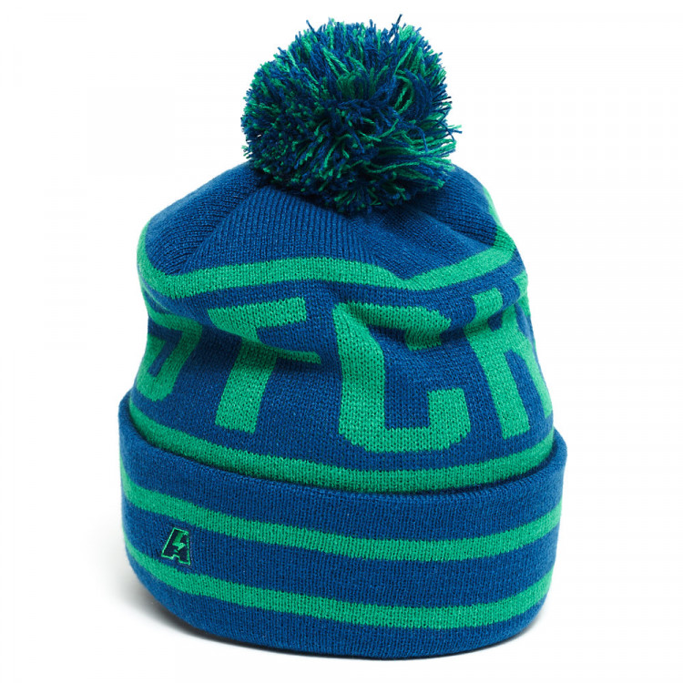 Шапка «FCKS» син-зелен.с помпоном и вышивкой КС