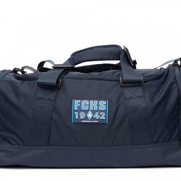 Сумка спортивная FCKS 1942 из нейлонового материала с регулируемой длиной ручек и отстегивающимся плечевым ремнем. Тип нанесения - полимерный шеврон. Производитель:Atributika&Club Размер: ширина: 52 см; высота: 27 см; глубина: 25 см; Объем - 35 л.. Состав: верх - 100% нейлон, подкладка - 100% полиэстер. Цвет: Синий. Элементы:Низ сумки усилен поролоном. Сумка имеет 2 боковых отделения с карманами на молнии по бокам. Внутри плоский нашивной карман-сетка. Страна производитель: КНР Данная вещь является сертифицированным продуктом, упакована в индивидуальную упаковку, защищена голограммой, имеет уникальный штрих код.