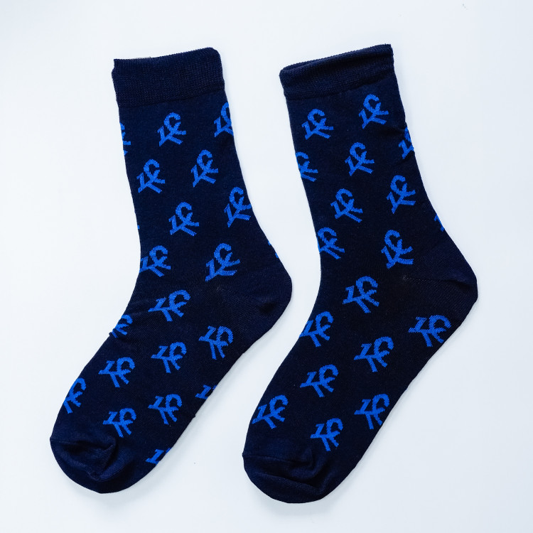 Носки высокие темно-синие с логотипом КС василькового цвета. Размер - 40-44. Состав - х/б
