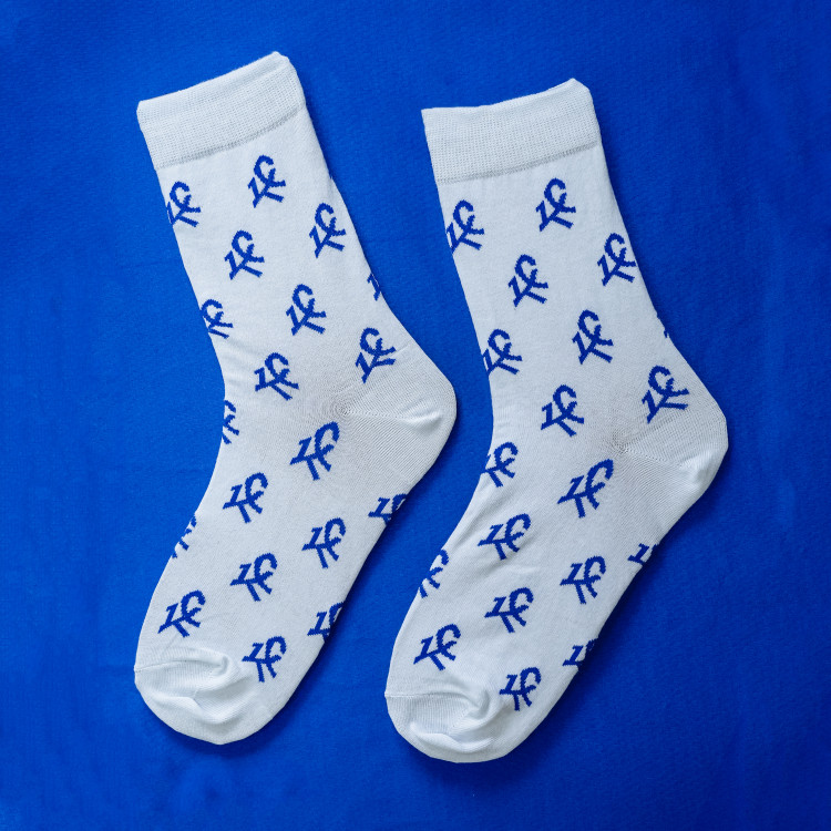 Носки высокие белые с логотипом КС синего цвета. Размер 40-44. Соств - х/б.