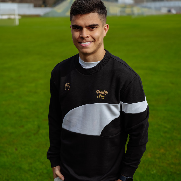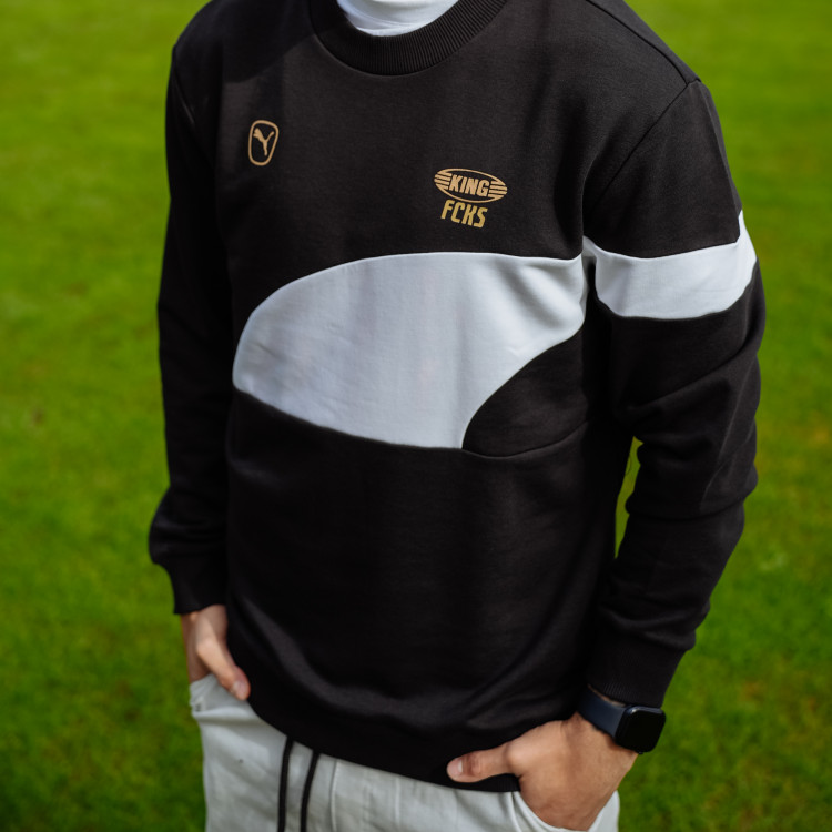 Джемпер мужской черный Puma с белыми вставками. Логотипы - золотого цвета. Состав - хлопок.