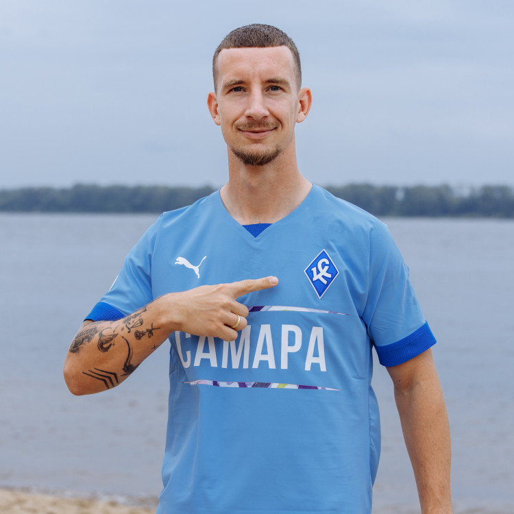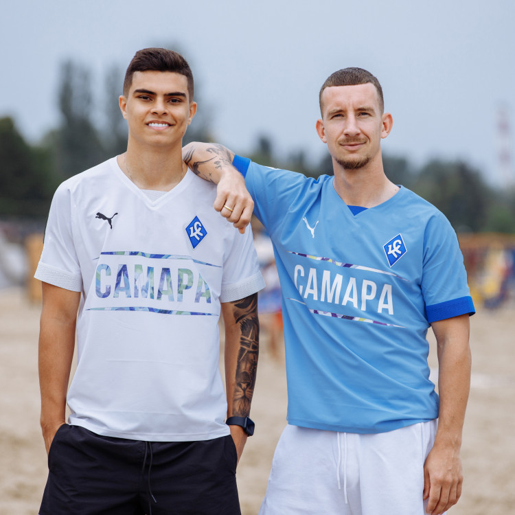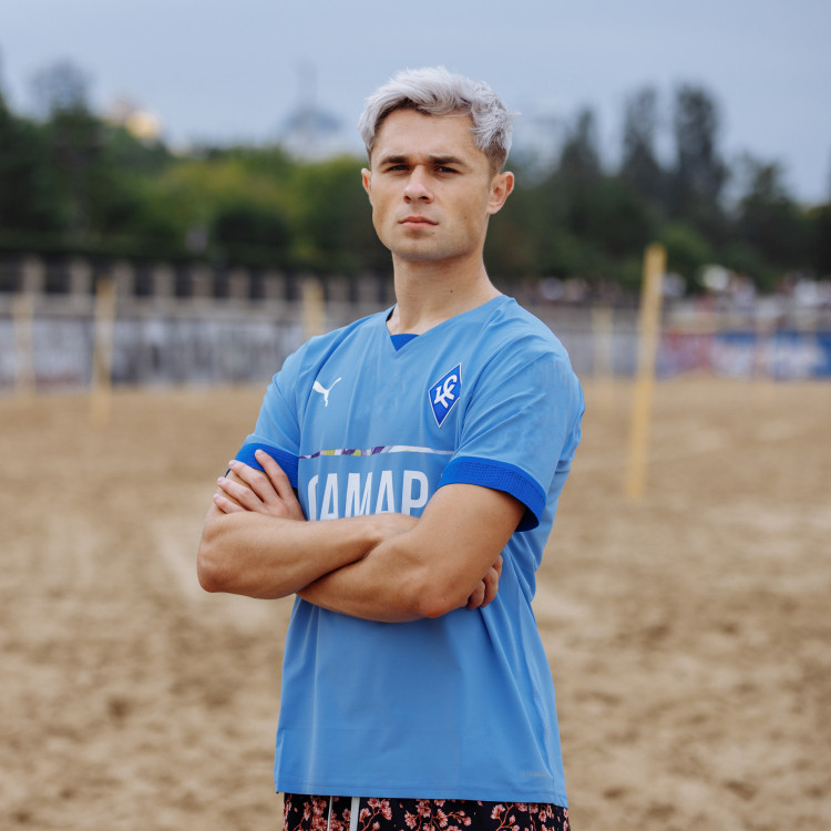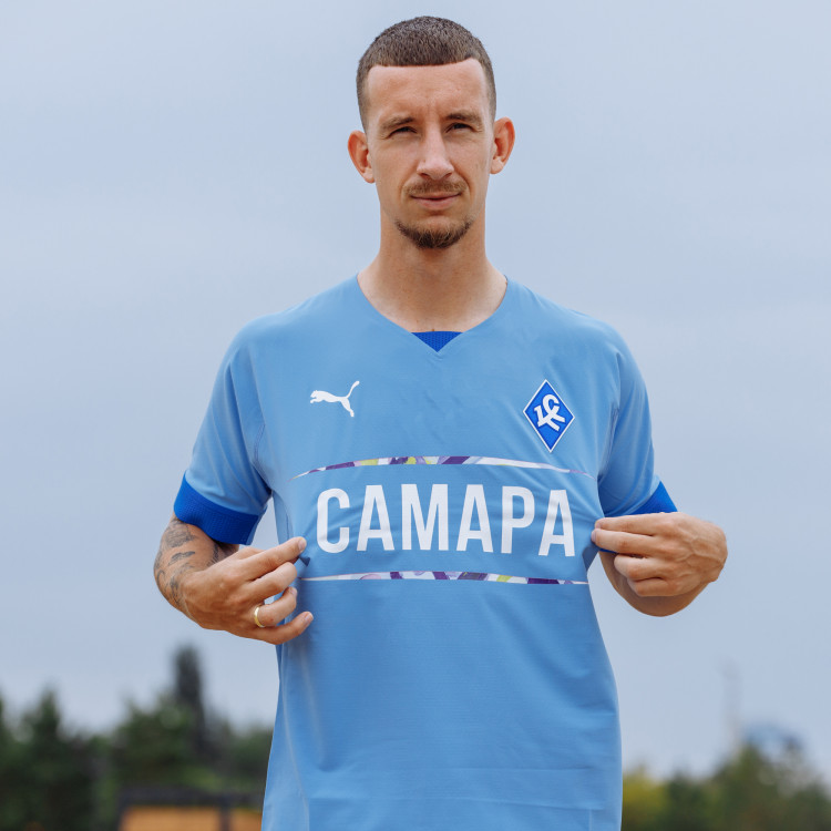 Майка игровая голубая Puma сезона 2023-2024 г. Состав: 100% полиэстер. "Домашняя" форма ПФК "Крылья Советов" В стоимость майки входит стандартное нанесение - Шеврон Ромб "Крылья Советов" и надпись термопечать на полочке "Самара".
