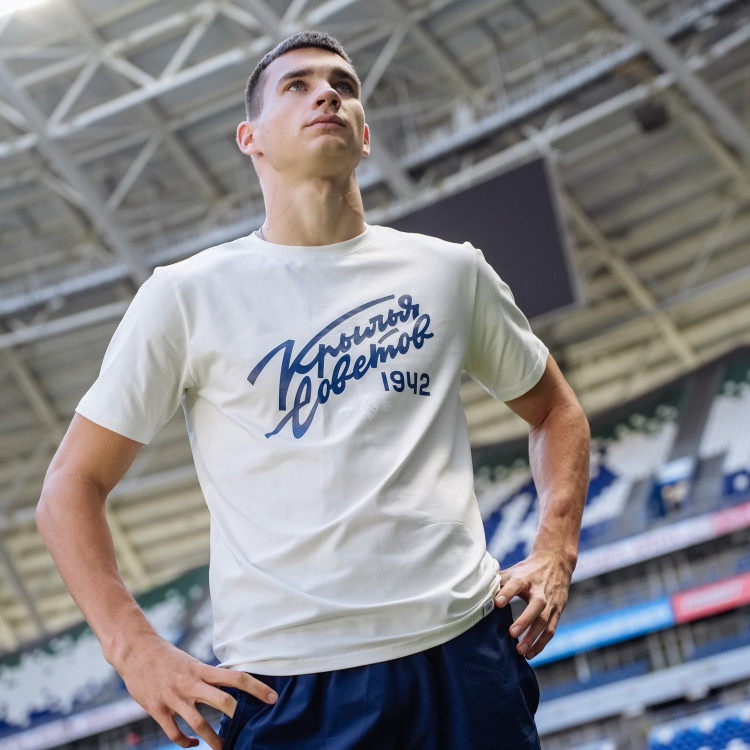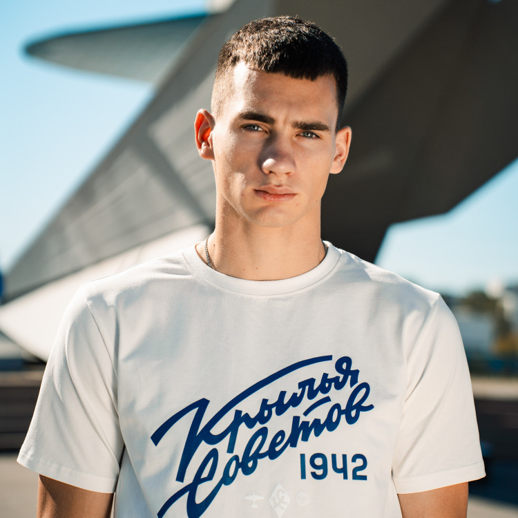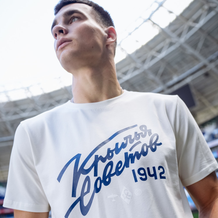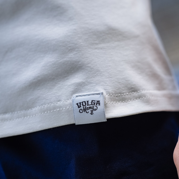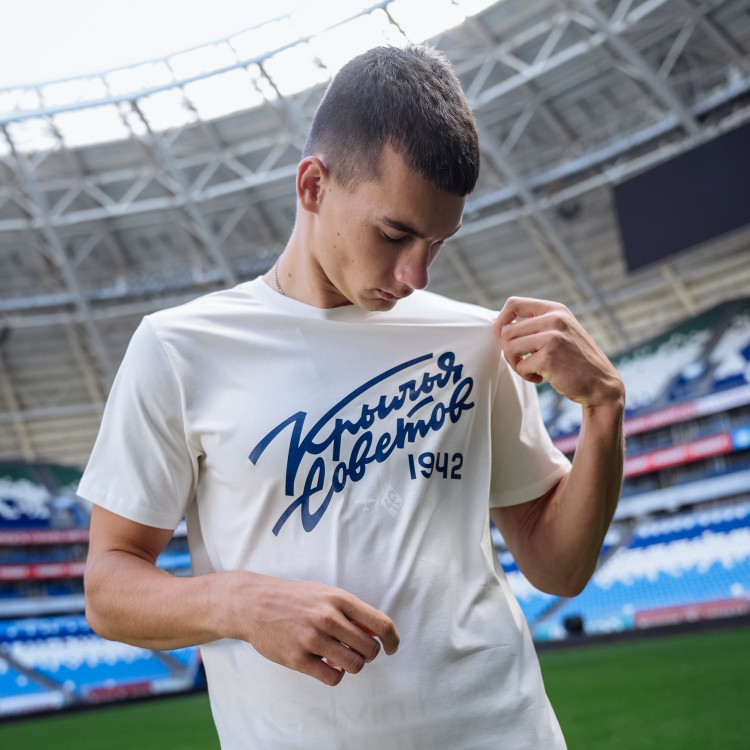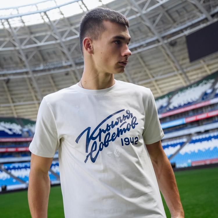 Футболка с надписью "Крылья Советов" (Volga Mama) Цвет - пломбир Состав: 90% хлопок, 10% эластан Совместная коллаборация "Крылья Советов" и "Волга Мама"
