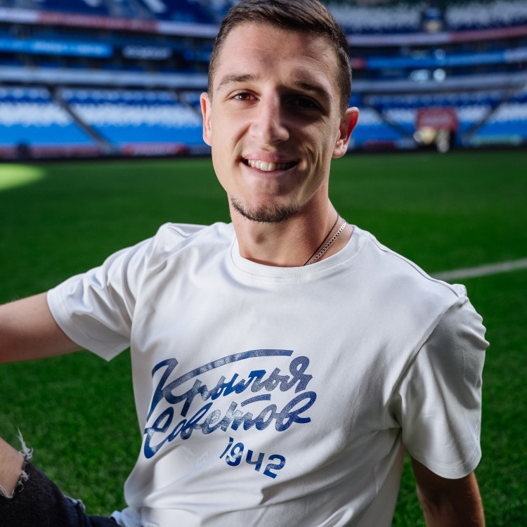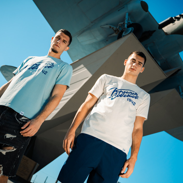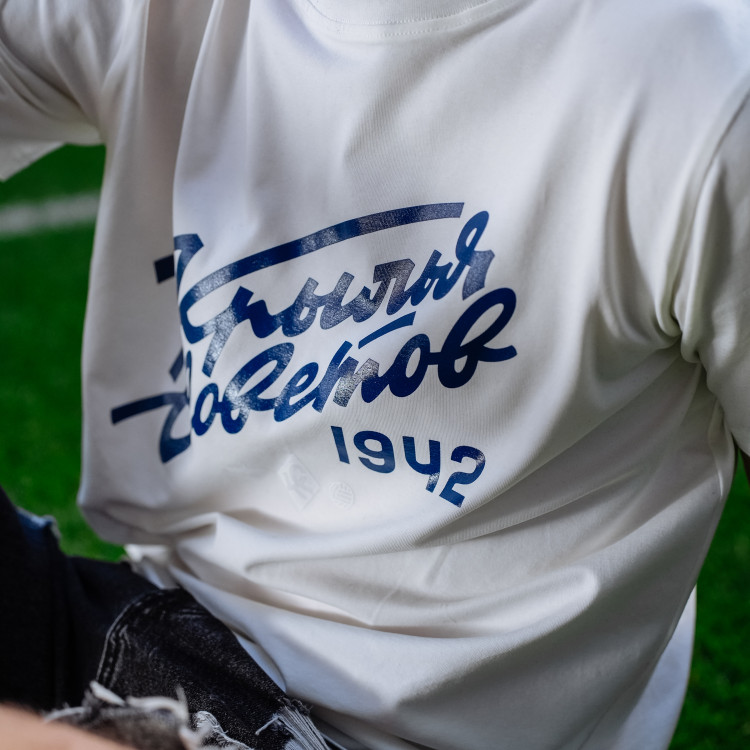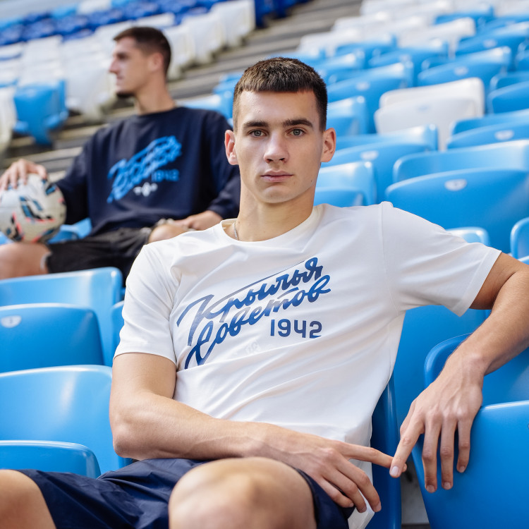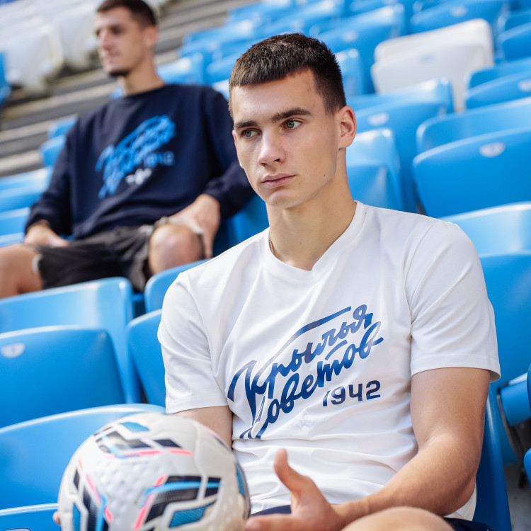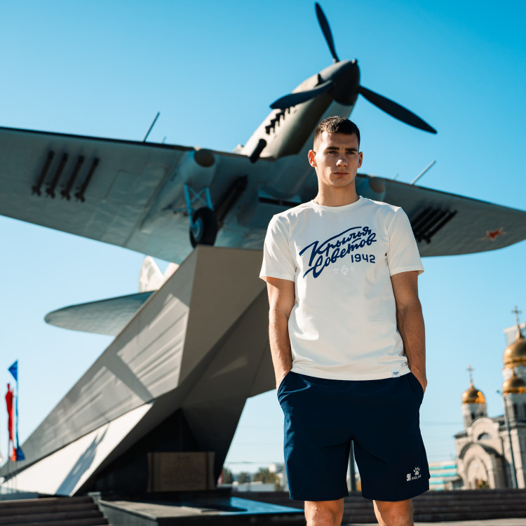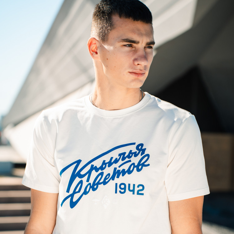 Футболка с надписью "Крылья Советов" (Volga Mama) Цвет - пломбир Состав: 90% хлопок, 10% эластан Совместная коллаборация "Крылья Советов" и "Волга Мама"