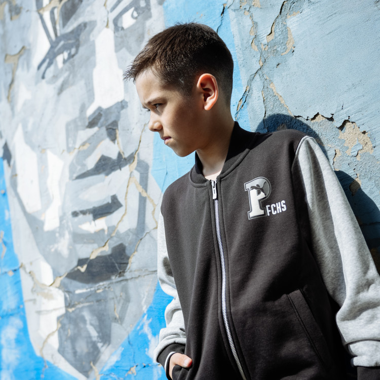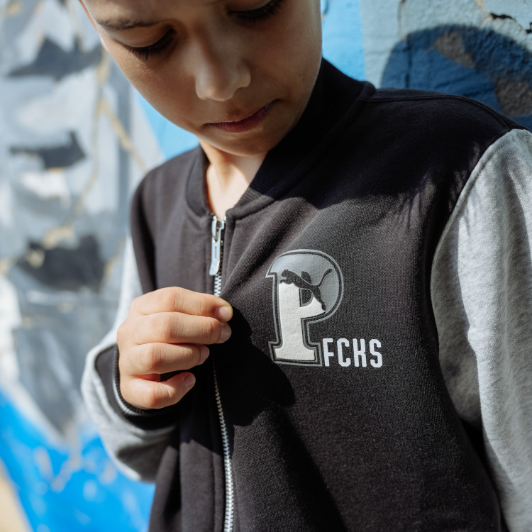 Бомбер детский черный с серыми рукавами Puma. Состав - хлопок.