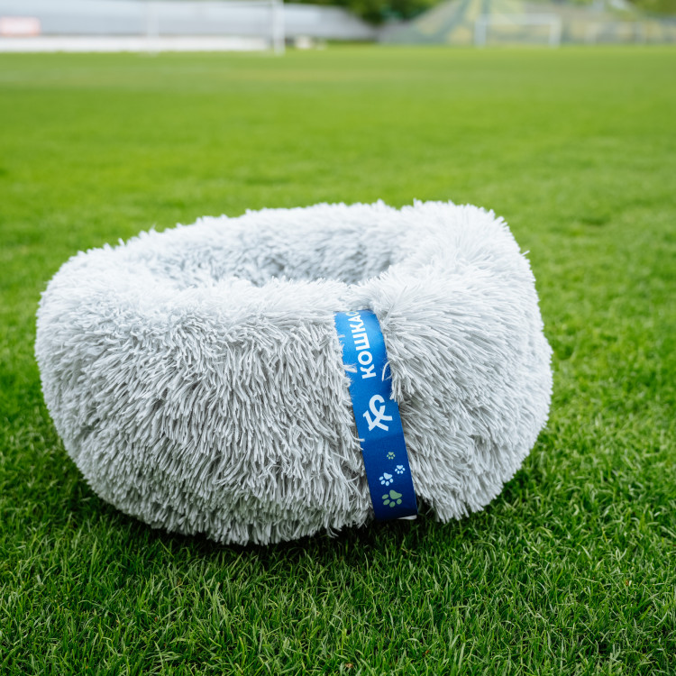 Коллекция для животных "КошкаСобака". Лежак серый круглый для кошек и собак мелких и средних пород. Совместная коллекция "Крылья Советов" и "Четыре лапы". Долговечные материалы, используемые для пошива изделий, за которыми легко ухаживать. Привлекательный дизайн в нейтральных серых оттенках отлично впишется в любой интерьер. Дно лежака не скользит благодаря специальному покрытию. Комфорт для питомца и его собственный уголок в вашем доме. Рекомендуется бережная ручная стирка. Подойдет для кошек и собак. Размер: 50-60 см