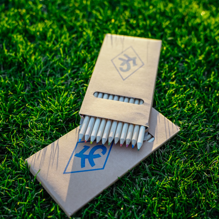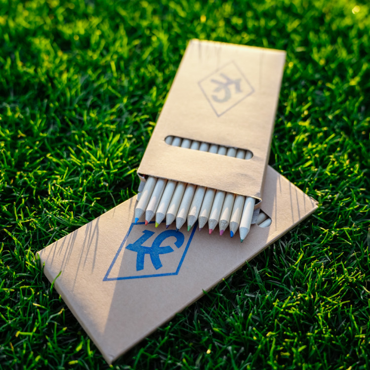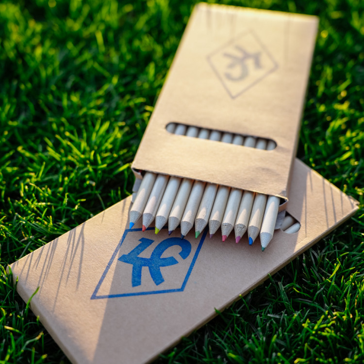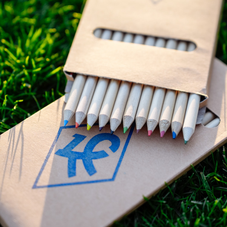 Карандаши цветные 12 штук в коробке крафт с логотипом КС.