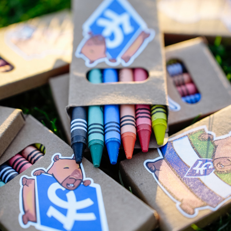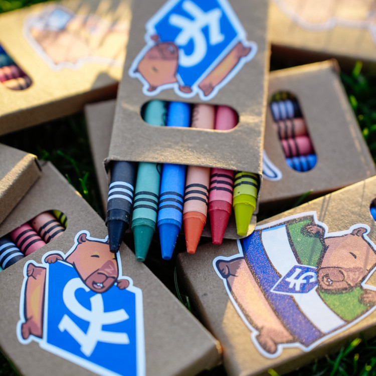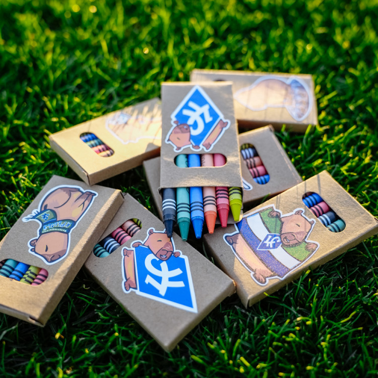 Карандаши восковые цветные 6 штук в коробке крафт с наклейкой капибара КС.