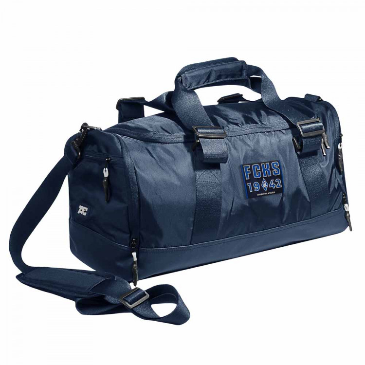 Сумка спортивная FCKS 1942 из нейлонового материала с регулируемой длиной ручек и отстегивающимся плечевым ремнем. Тип нанесения - полимерный шеврон. Производитель:Atributika&Club Размер: ширина: 52 см; высота: 27 см; глубина: 25 см; Объем - 35 л.. Состав: верх - 100% нейлон, подкладка - 100% полиэстер. Цвет: Синий. Элементы:Низ сумки усилен поролоном. Сумка имеет 2 боковых отделения с карманами на молнии по бокам. Внутри плоский нашивной карман-сетка. Страна производитель: КНР Данная вещь является сертифицированным продуктом, упакована в индивидуальную упаковку, защищена голограммой, имеет уникальный штрих код.
