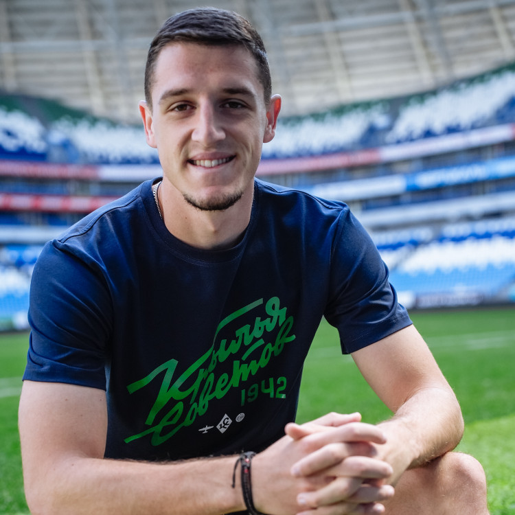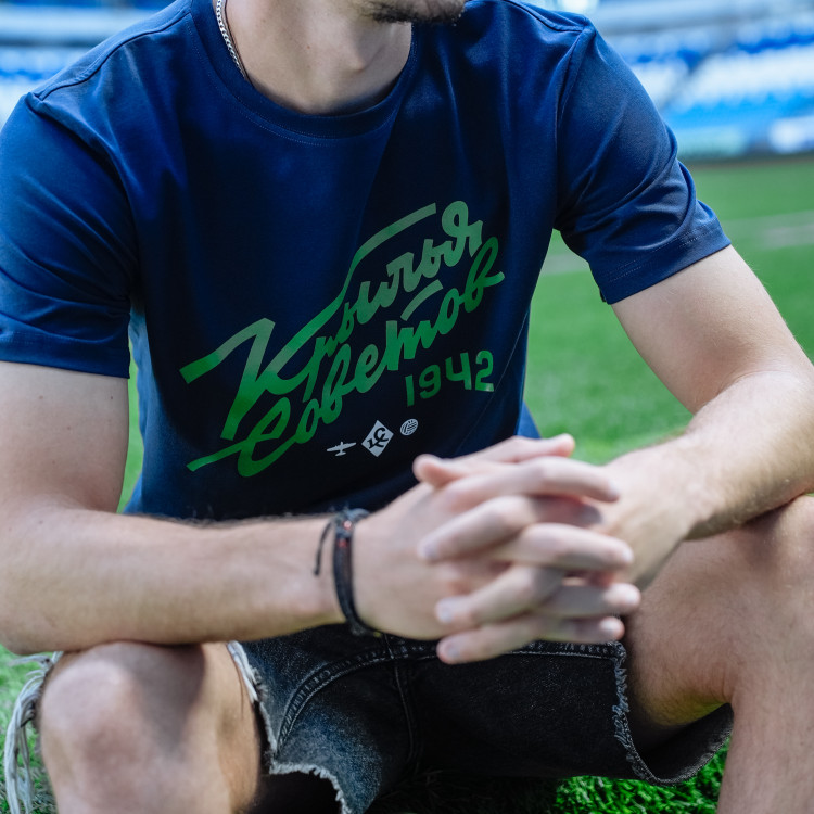 Футболка с надписью "Крылья Советов" (Volga Mama) цвет - нави состав: 90% хлопок, 10% эластан Совместная коллаборация "Крылья Советов" и "Волга Мама"