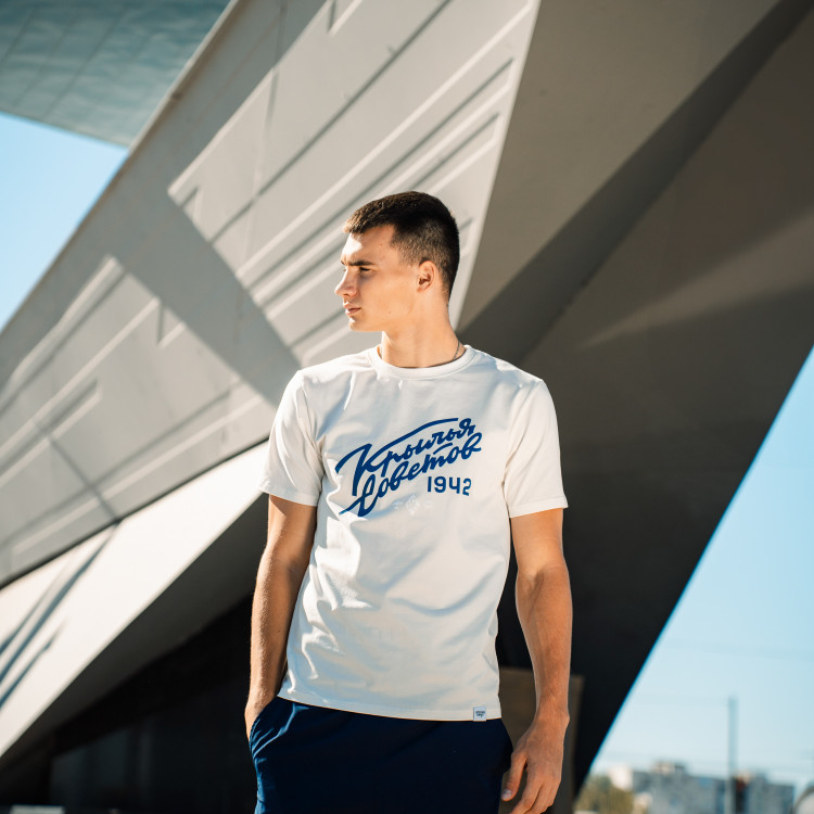 Футболка с надписью "Крылья Советов" (Volga Mama) Цвет - пломбир Состав: 90% хлопок, 10% эластан Совместная коллаборация "Крылья Советов" и "Волга Мама"
