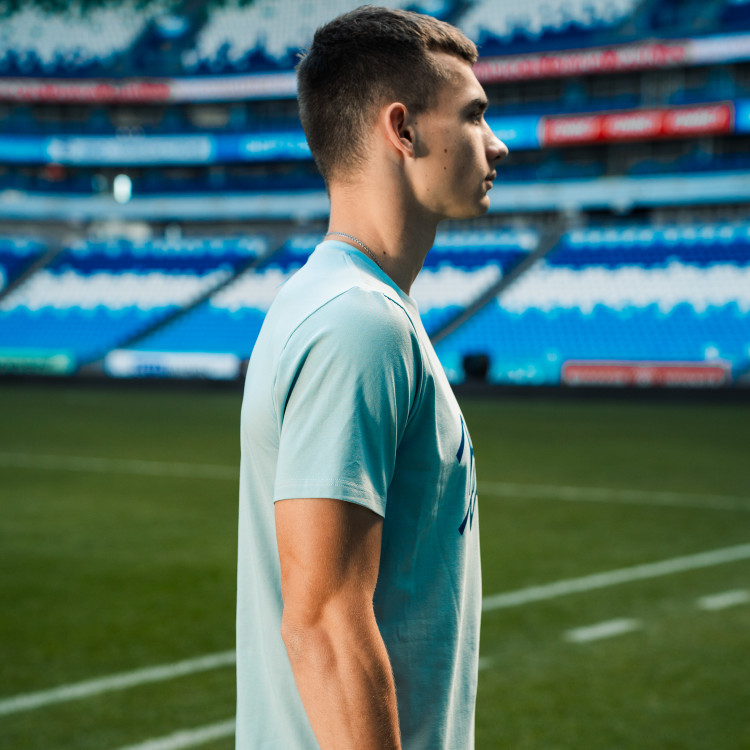 Футболка с надписью "Крылья Советов" (Volga Mama) Цвет - голубой Состав: 90% хлопок, 10% эластан. Совместная коллаборация "Крылья Советов" и "Волга Мама"