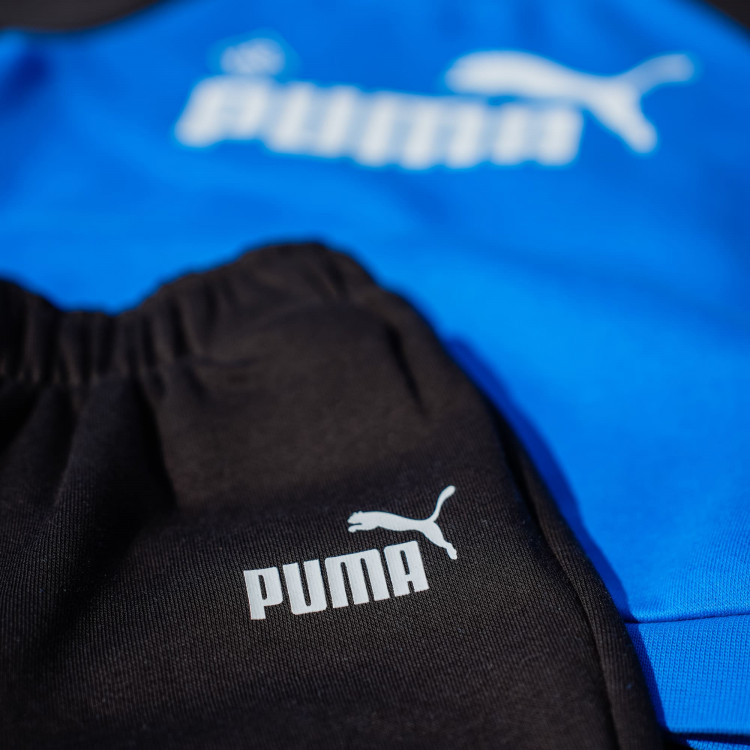 Костюм детский Puma. Комплект из свитшота синего цвета с черными рукавами и брюками черного цвета. Состав - хлопок.